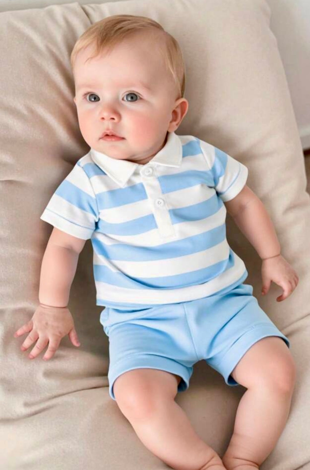 Conjunto informal de suéter liso y pantalones a rayas para bebé niño en otoño/invierno
