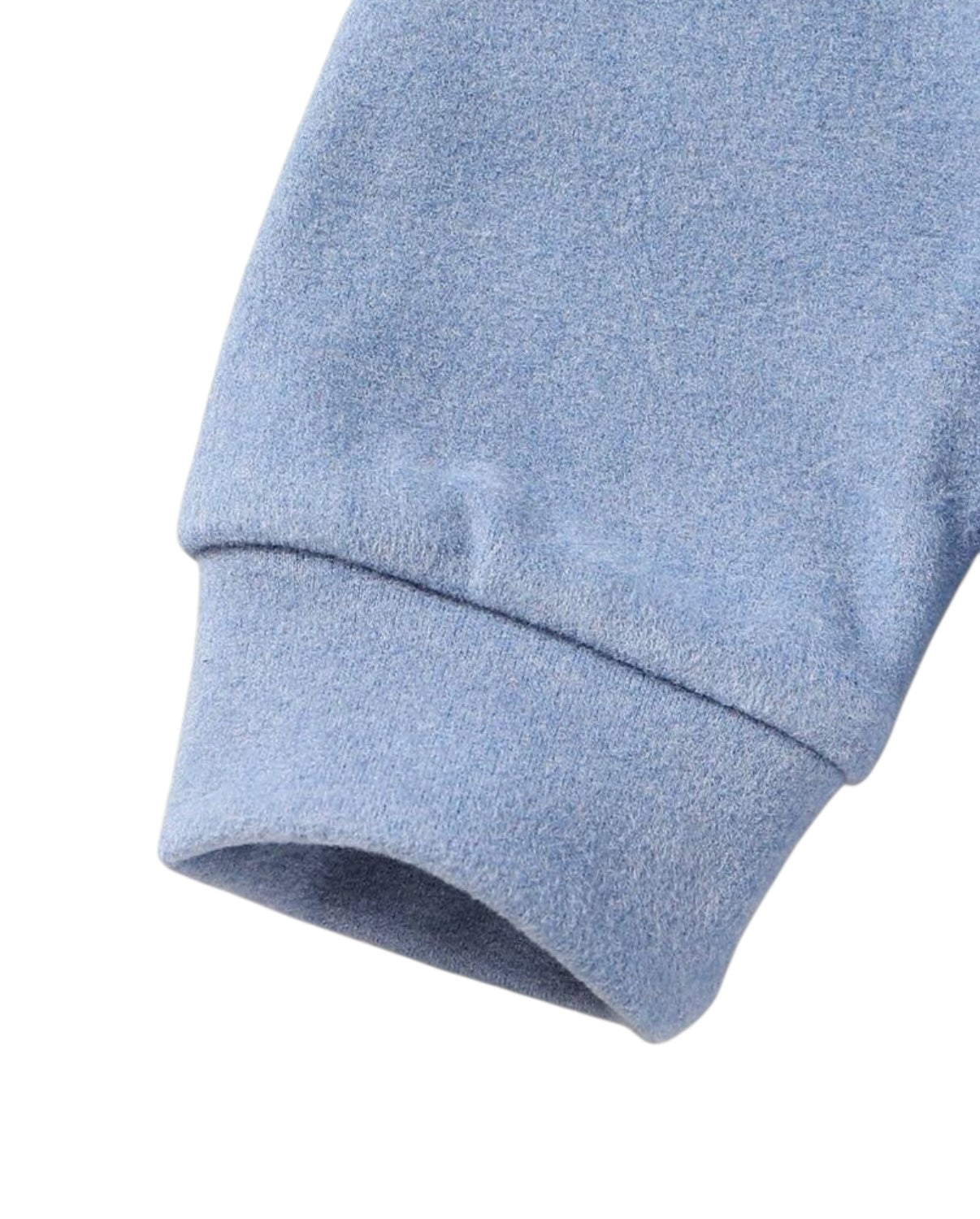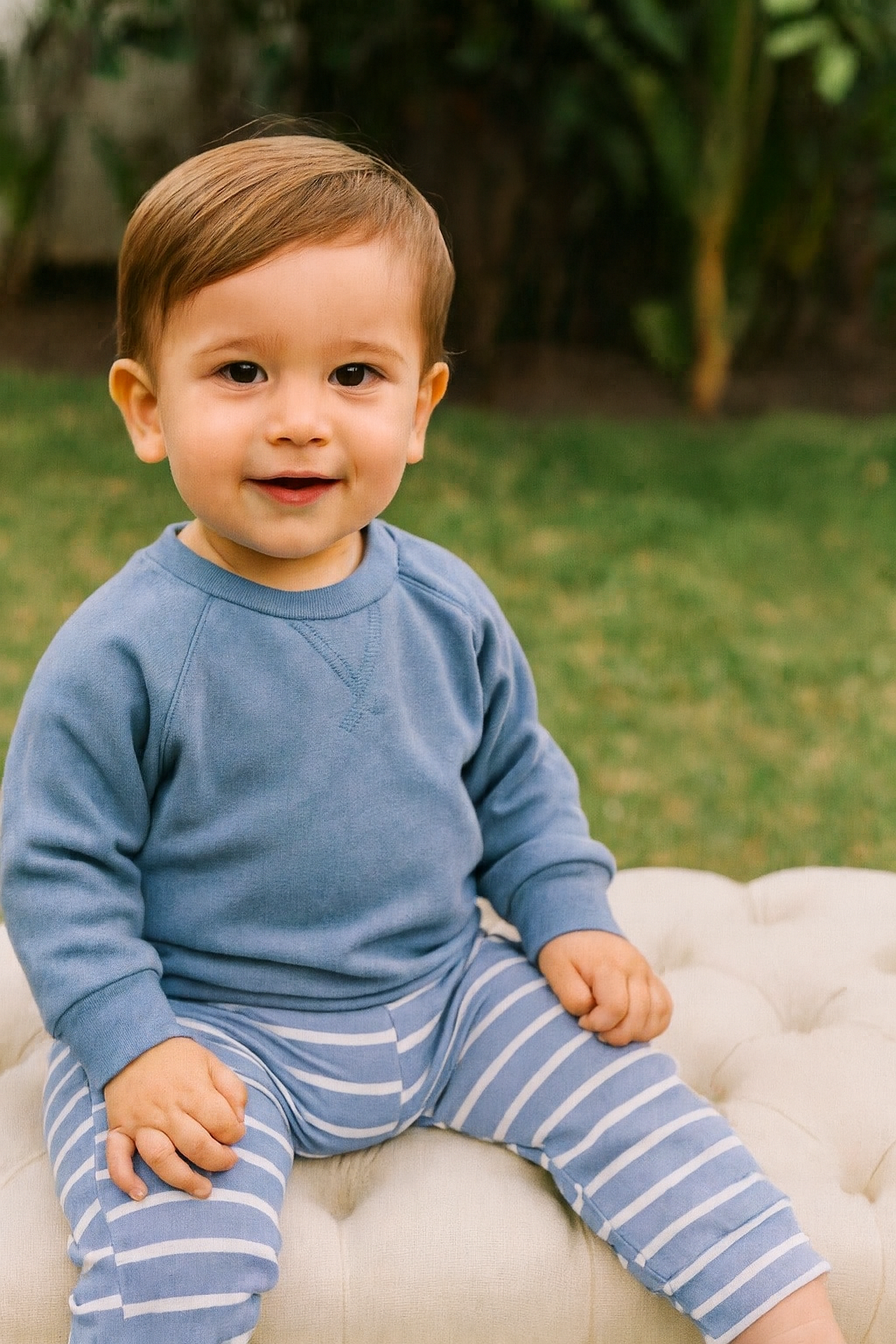 Conjunto cómodo y moderno de dos piezas ideal para uso diario o para salidas casuales. Su diseño combina practicidad con un estilo europeo clásico en tonos azul pastel.