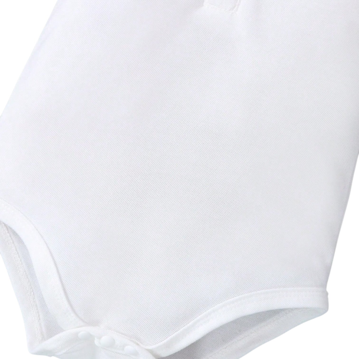 Un conjunto clásico, fresco y elegante que combina la practicidad del cuerpo tipo polo con la comodidad de un short en tono neutro. Ideal para bebés en cualquier ocasión, desde un paseo casual hasta un evento especial.