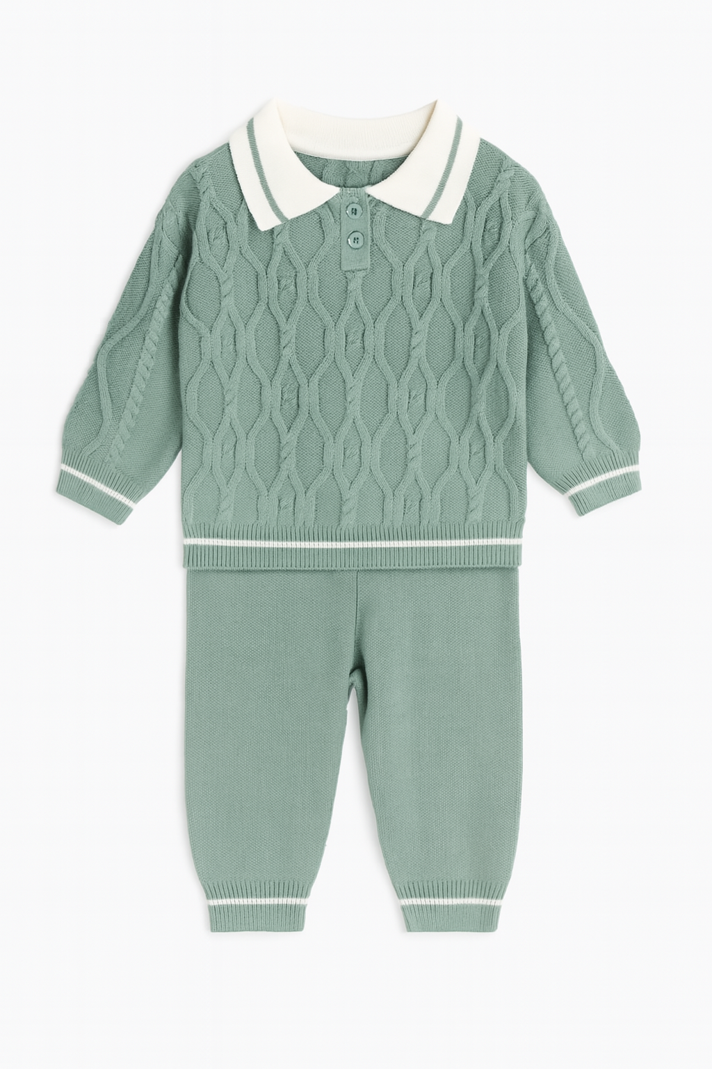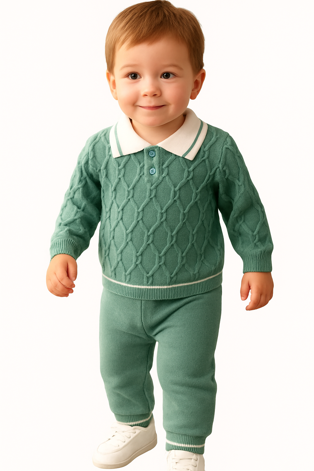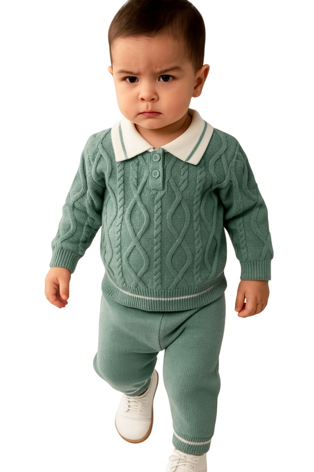 Conjunto informal de suéter liso y pantalones a rayas para bebé niño en otoño/invierno