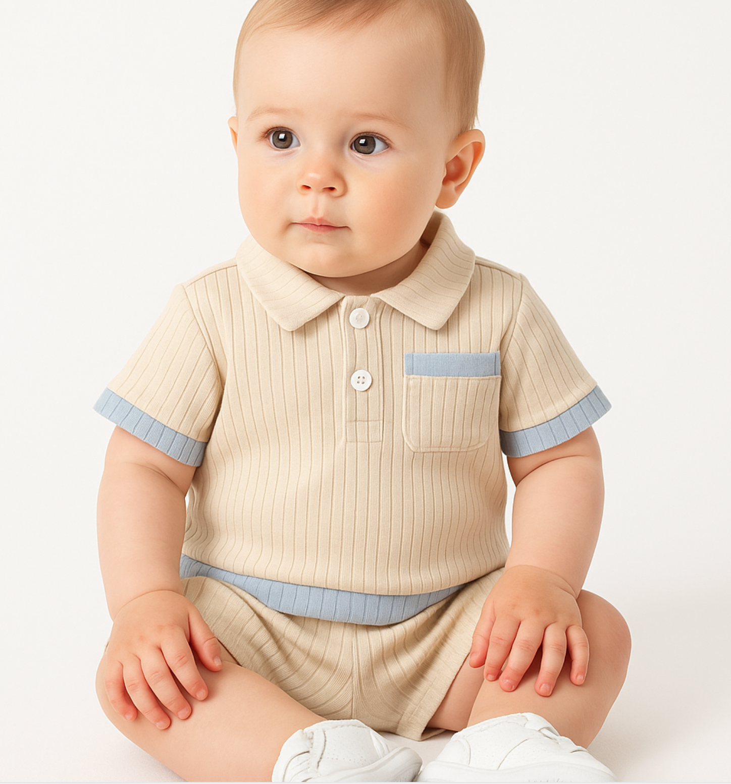 Set de 2 piezas con parte superior de cuello redondo de manga corta y pantalones cortos de cintura elástica en colores contrastados para bebé niño