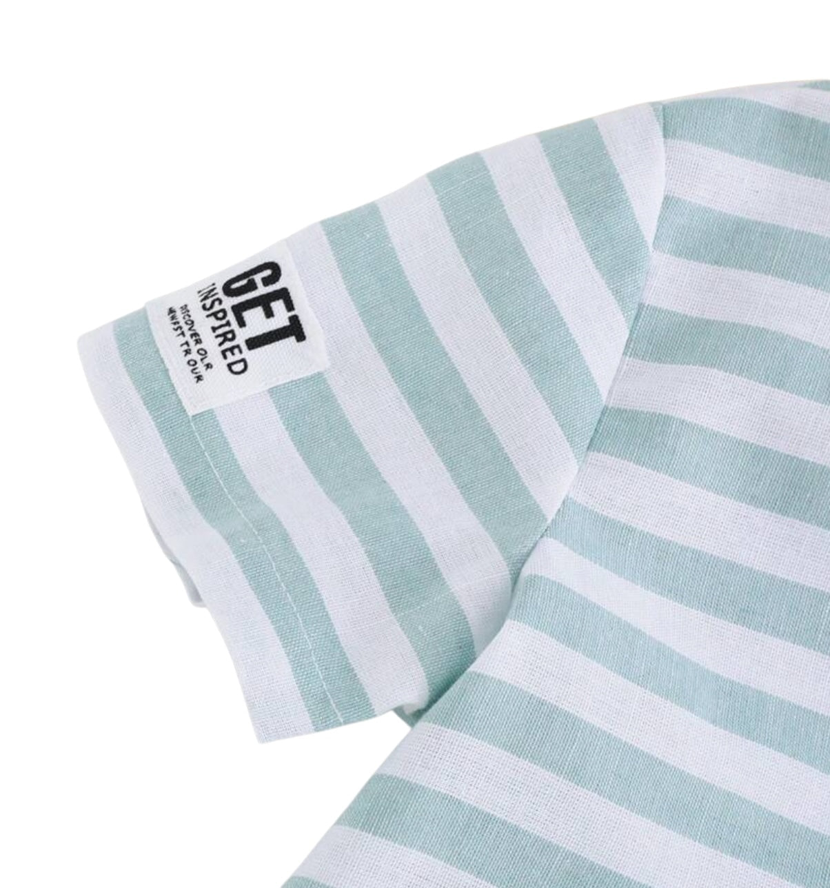 Camisa tipo polo de manga corta con rayas horizontales en color blanco y verde menta claro.
