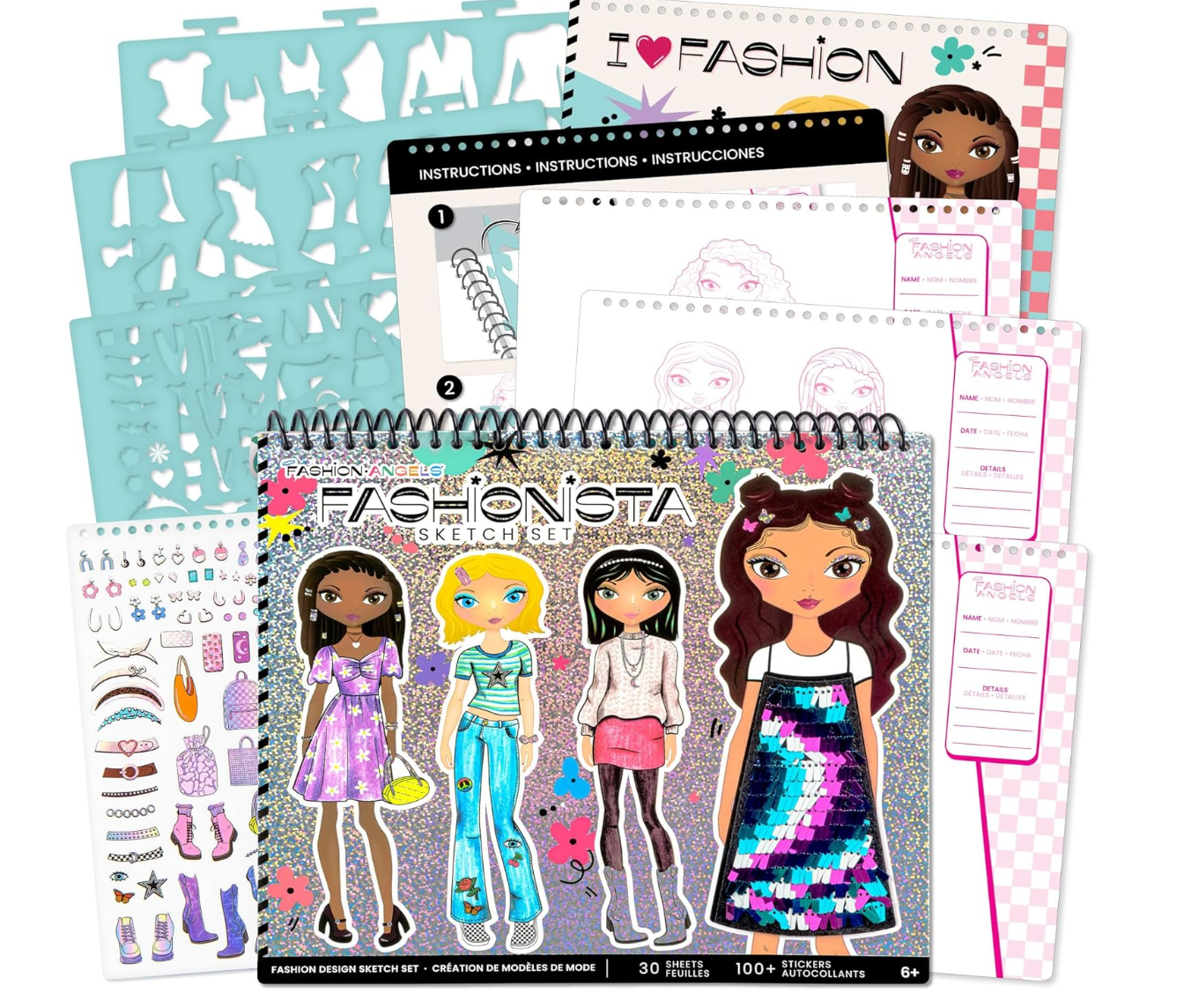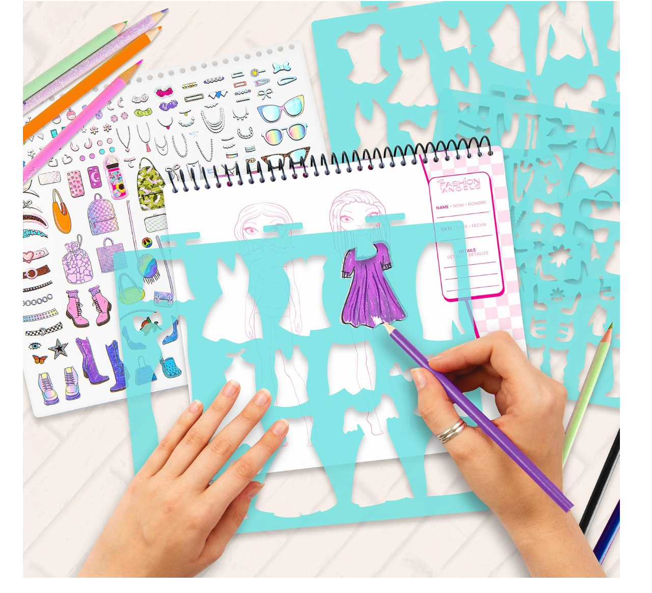 Este bloc de dibujo te permite dibujar modas y accesorios en los modelos de Fashion Angels.