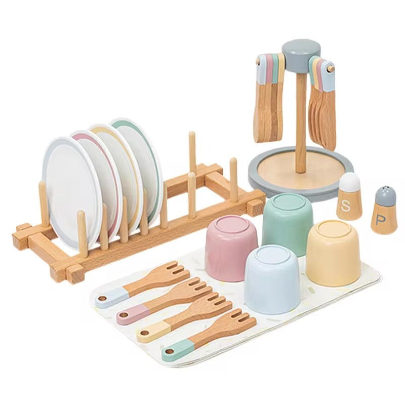 Juego de vajilla occidental de simulación de madera, juguetes de Casa de juegos de simulación, juego de cocina, juguete educativo para niños, regalo de cumpleaños para niñas.