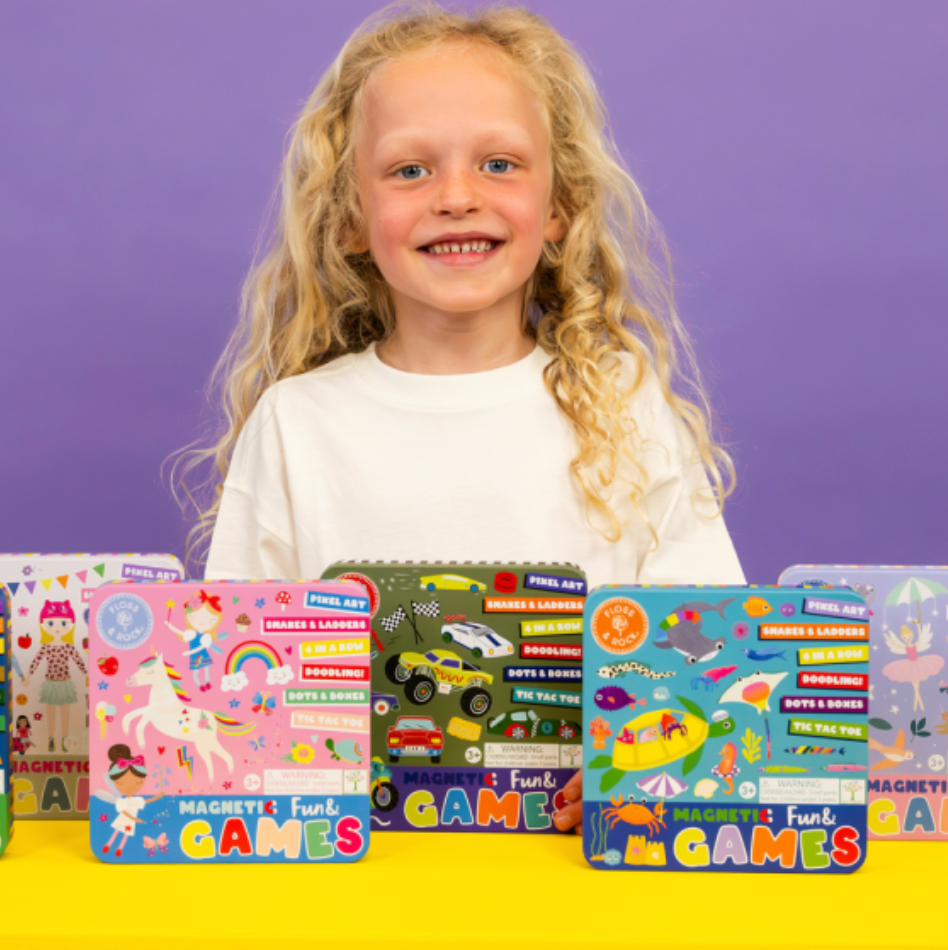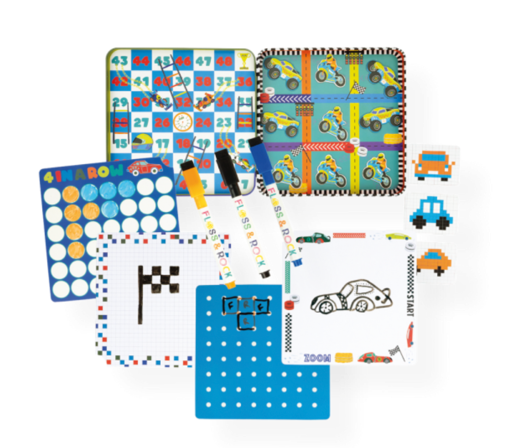 Nuestra nueva Caja Magnética de Diversión y Juegos está repleta de diversión para llevar. Descubre 6 actividades y juegos: “Serpientes y Escaleras”, “Tres en raya”, “Pixel Art”, “4 en Raya”, “Puntos y Cajas” y una página para dibujar. Cada caja es reutilizable e incluye piezas magnéticas extraíbles, 3 rotuladores de borrado en seco de colores con gomas de borrar y un dado para jugar. ¡Nuestro diseño de Cars es perfecto para los amantes de los coches de carreras y los monster trucks!