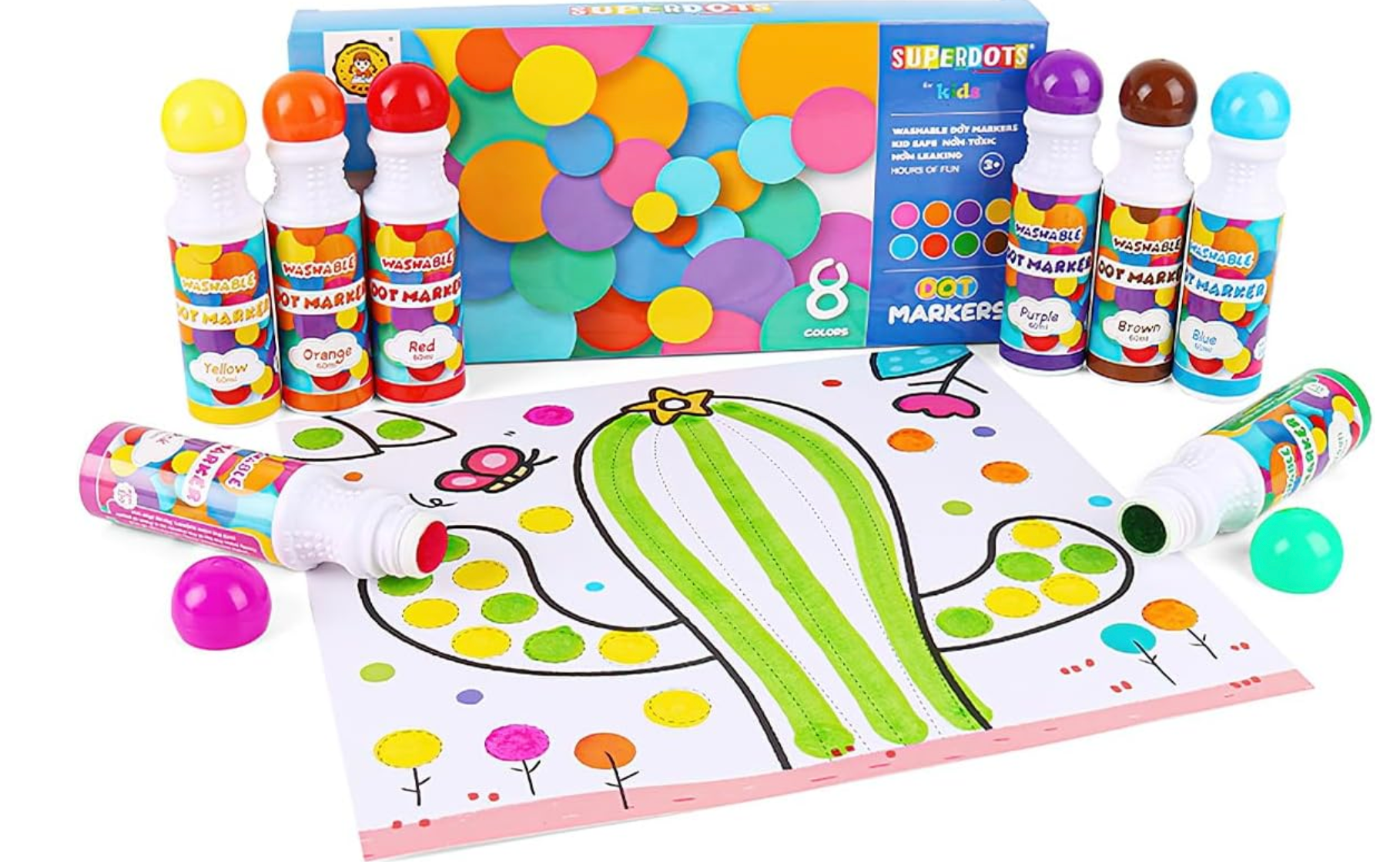 🎨【8 colores brillantes】: los marcadores de puntos de 8 colores están bien pigmentados y son vibrantes. Los 8 colores vivos hacen que pintar sea fácil y divertido para niños pequeños y preescolares.