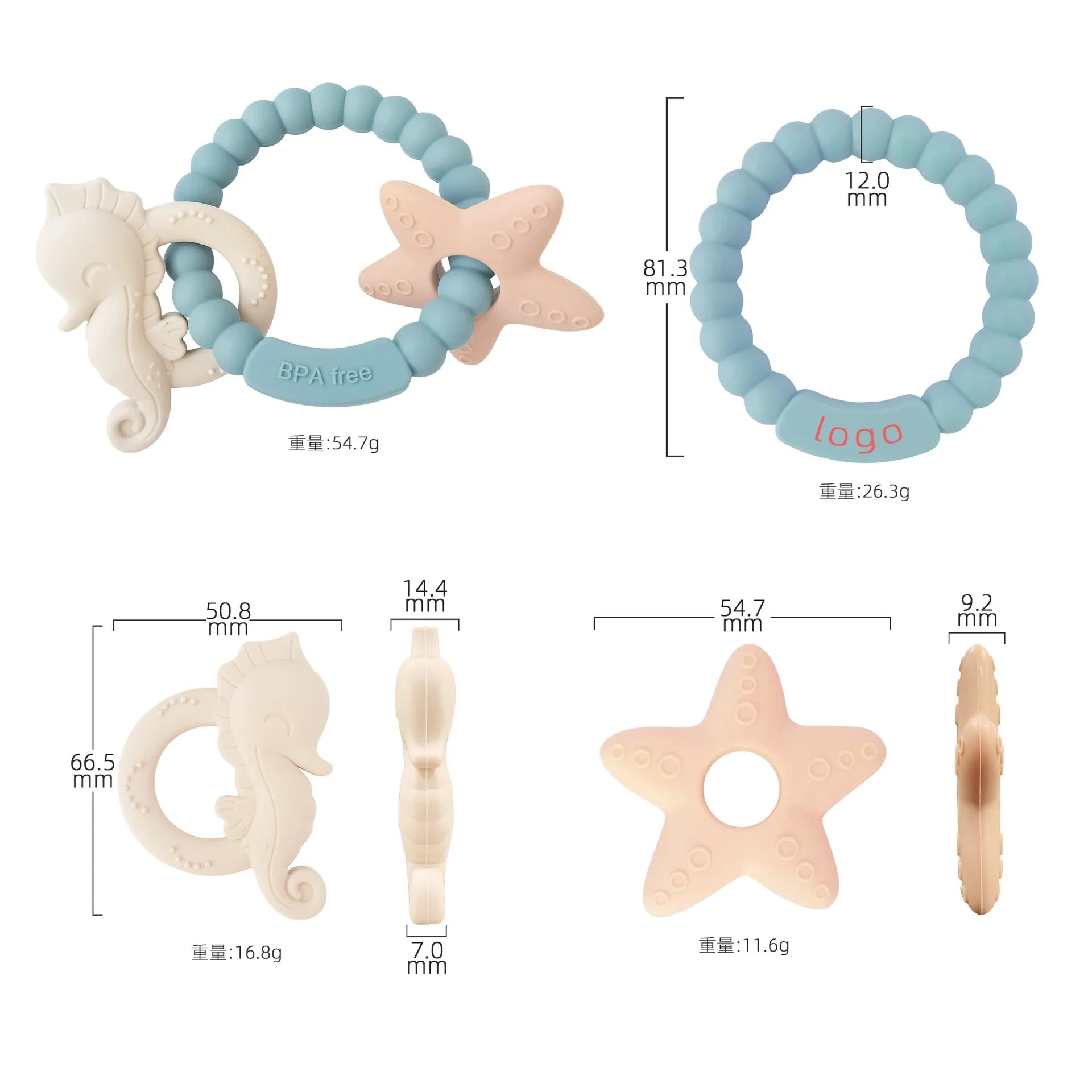 De silicona e imán, para bebe, sin BPAS mordedera.