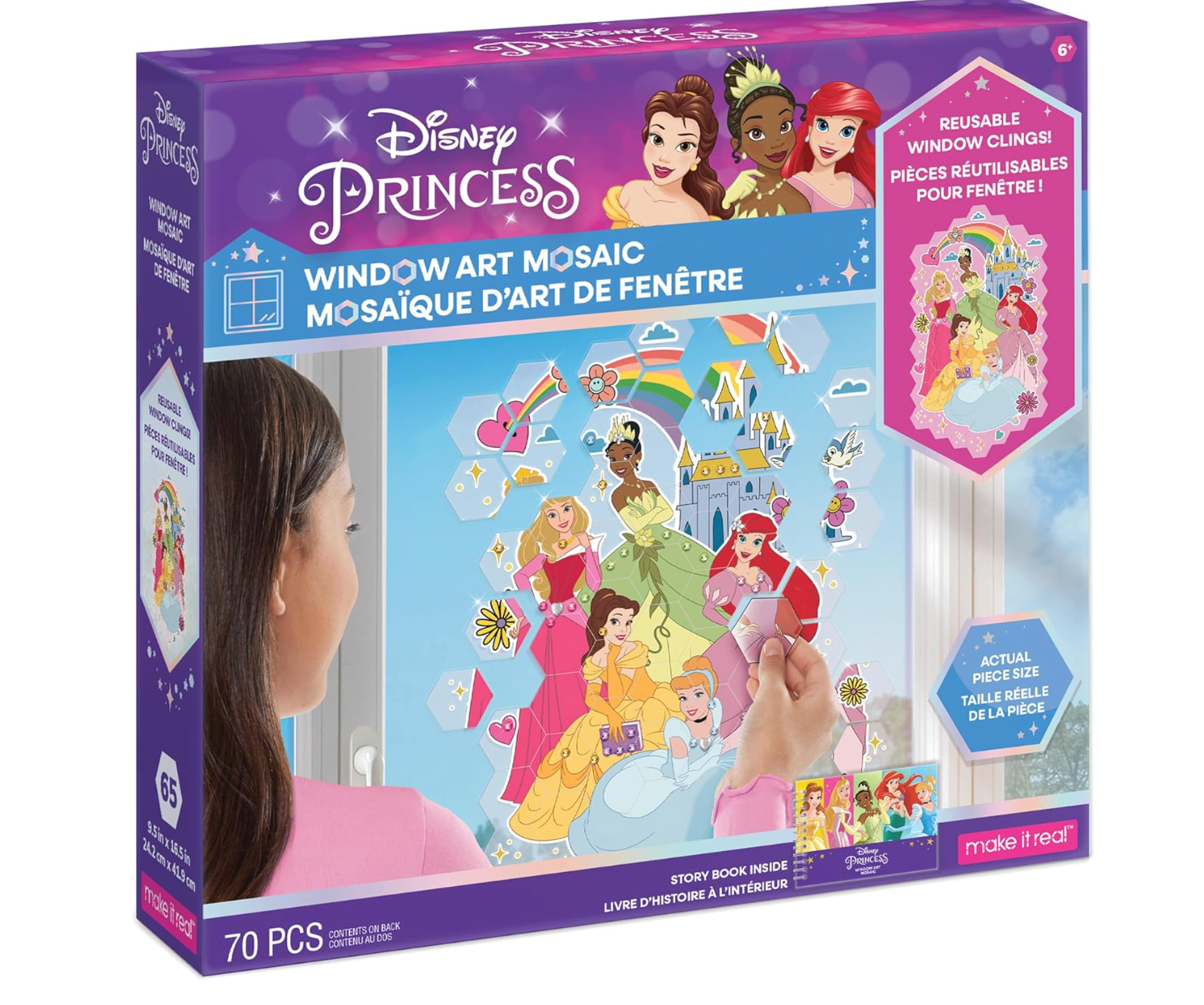 - Arte de ventana de bricolaje: la diversión de un rompecabezas y el resultado de una hermosa calcomanía para ventana. Reúne translúcido se adhiere a una ventana y observa cómo el sol ilumina un colorido mosaico de princesa de Disney.