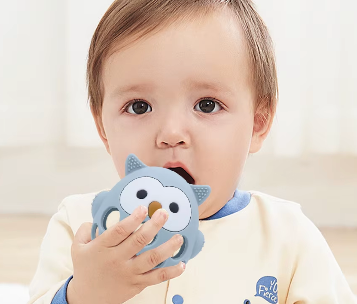 Mordedores de búho para bebé, juguete mordedor con forma de búho de dibujos animados, cuidado Dental de silicona, encías, mano anticomer Accesorio molar para bebé