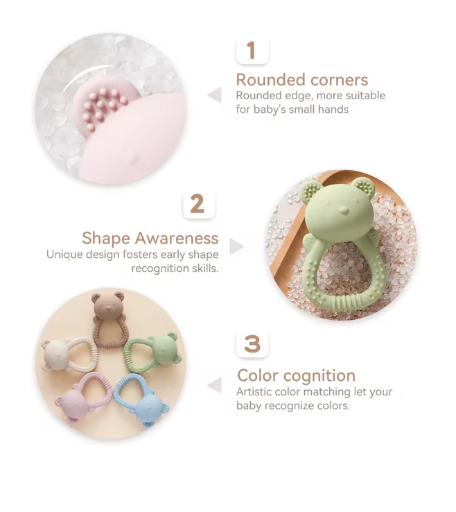 Mordedor de silicona para bebé, de mano de oso, juguetes mordedores de calidad alimentaria, sonajero para bebé de 0 a 12 meses, juguetes sensoriales de silicona, juguete para la dentición.
